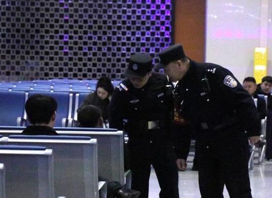 民警裴保军督导客运职工对旅客携带可疑物品进行检查。许晶 摄